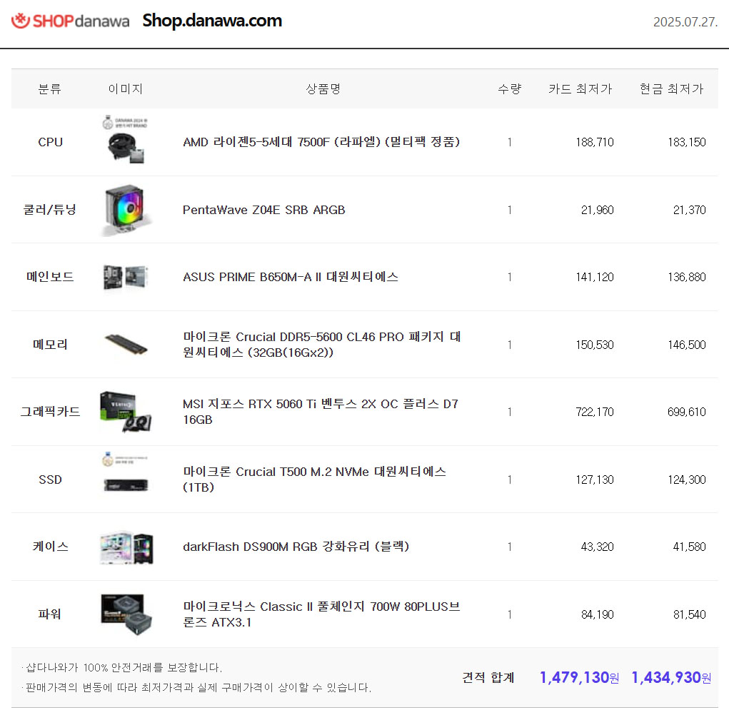 ¶óÀÌÁ¨5 7500F + 32GB + RTX 5060 + 1TB Á¶ÇÕÀÇ ½Ã½ºÅÛÀÔ´Ï´Ù.